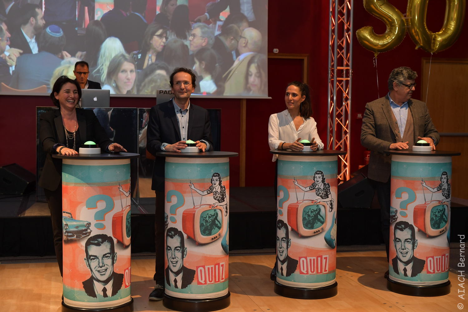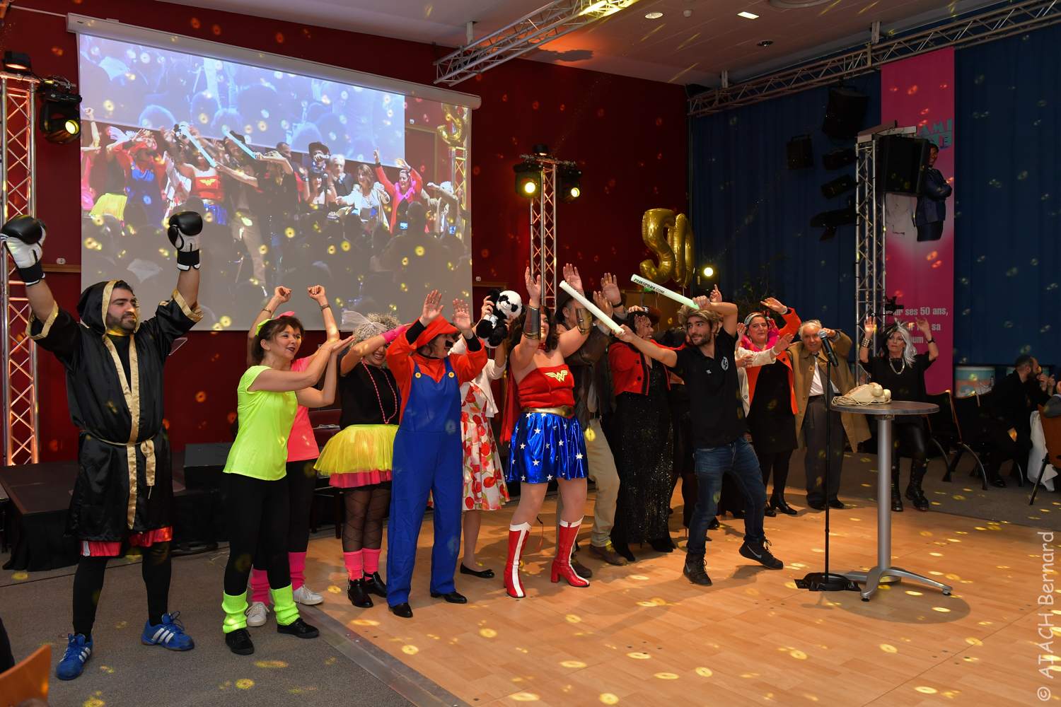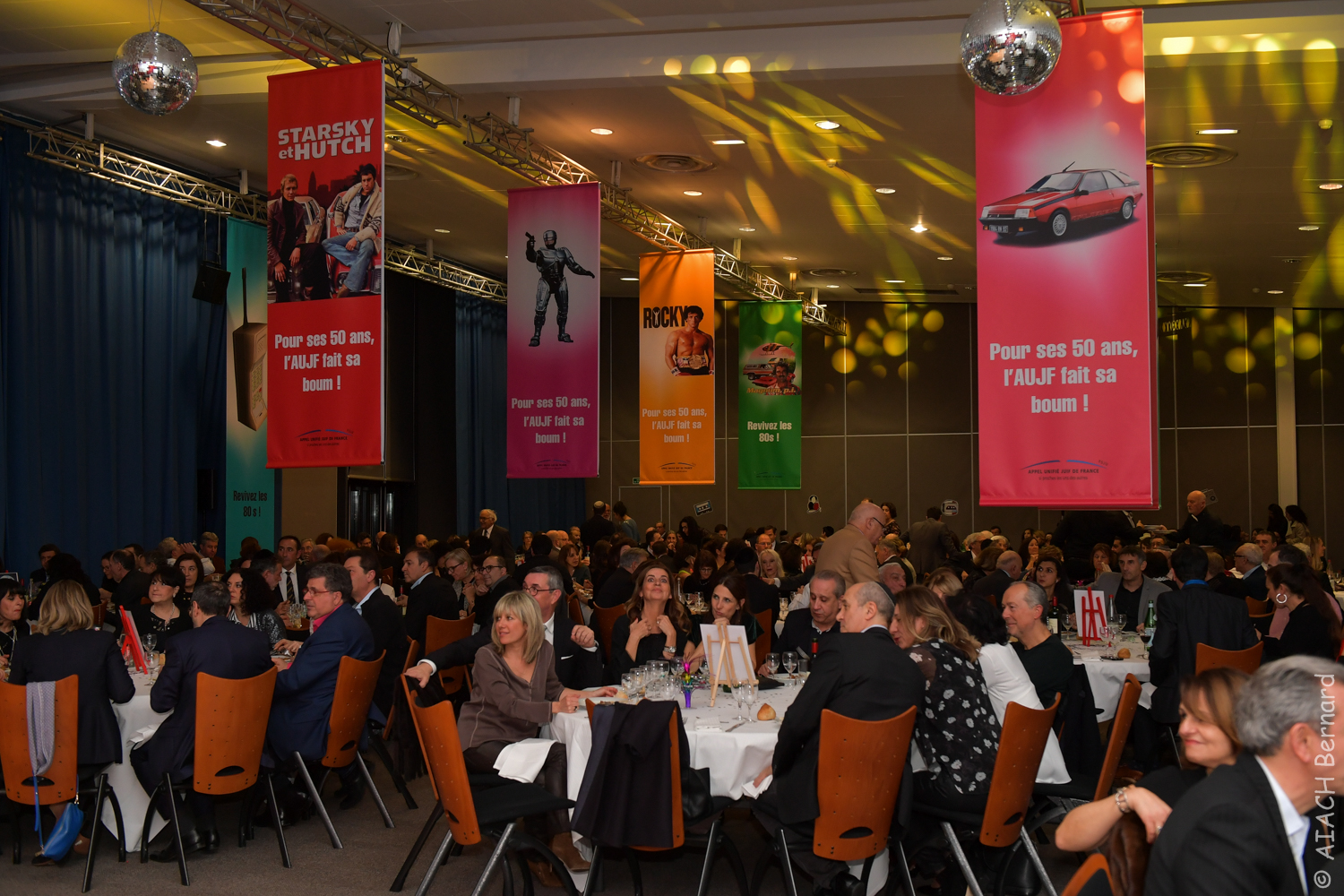 Pour fêter les 50 ans de l’AUJF, un programme original avait été prévu : visuels de séries TV, publicités cultes des 80’s, sketchs iconiques de l’époque, blind-test musical ou Dance floor, sous la houlette de l’animateur vedette de NRJ, Marc Scalia. Une soirée « Retour vers le Futur » joyeuse, placée sous le signe de la solidarité et qui fut une vraie réussite !