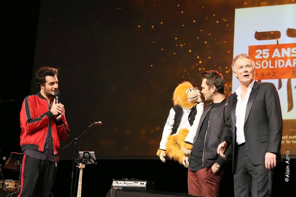 Plus de 3500 personnes ont participé lundi 18 décembre à la Grande Soirée de Solidaritéorganisée au Palais des Congrès pour les 25 ans de l’Appel national pour la tsédaka. Amir et Franck Dubosc, parrains de cette édition exceptionnelle, ont animé avec brio cette soirée mémorable ! Michel Boujenah, Jeff Panacloc et Jean-Marc, Patrick Bruel, Ary Abitan, Kev Adams, Enrico Macias et son petit-fils Symon, Michel Drucker, Grégoire et de nombreux autres artistes français se sont succédé sur scène, mêlant appels aux dons, chansons et sketchs dans une ambiance magnifique. « Ils ne savaient pas que c’était impossible alors ils l’ont fait » ont déclaré Ariel Goldmann, président du FSJU, et Gérard Garçon, président la campagne Tsédaka, rappelant l’action, depuis 25 ans, de l’Appel national pour la tsédaka, qui vient en aide aux plus démunis, juifs et non-juifs. Enfin, à l’occasion du 7ème jour de Hannouka, des membres d’associations bénéficiaires de la Tsédaka sont, à leur tour, montés sur scène pour l’allumage de la Hannoukia. Un moment de grande émotion, symbole des valeurs et de l’esprit de la Tsédaka.